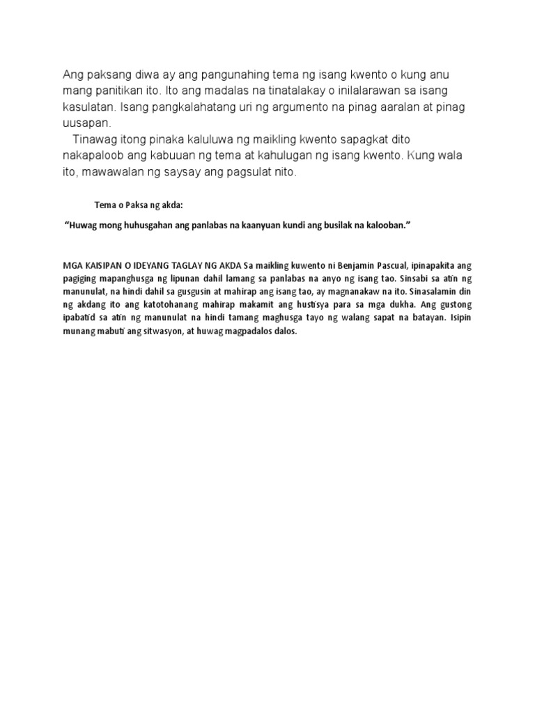 Ang Paksang Diwa Ay Ang Pangunahing Tema Ng Isang Kwento O Kung Anu Mang Panitikan Ito Pdf