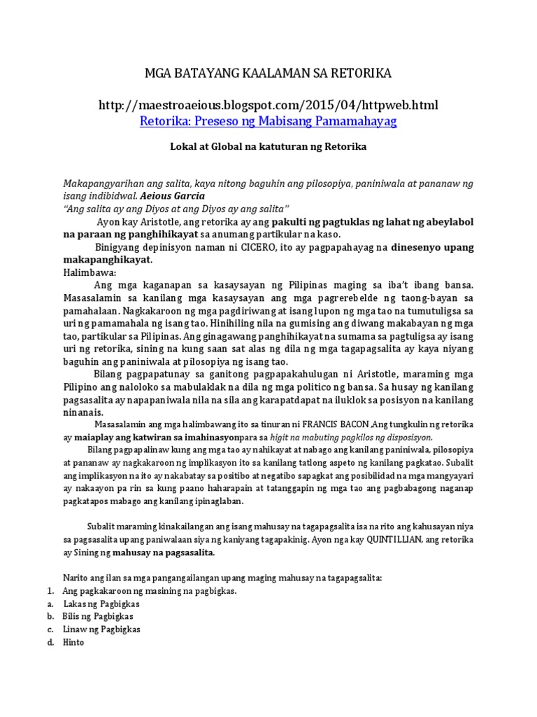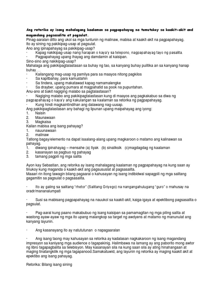 Ang Retorika Pdf Ang Retorika Retorika Ang Retorika Ay Isang Mahalagang Karunungan Ng Pagpapahayag Na Tumutukoy Sa Sining Ng Maganda At Kaakit Akit Course Hero